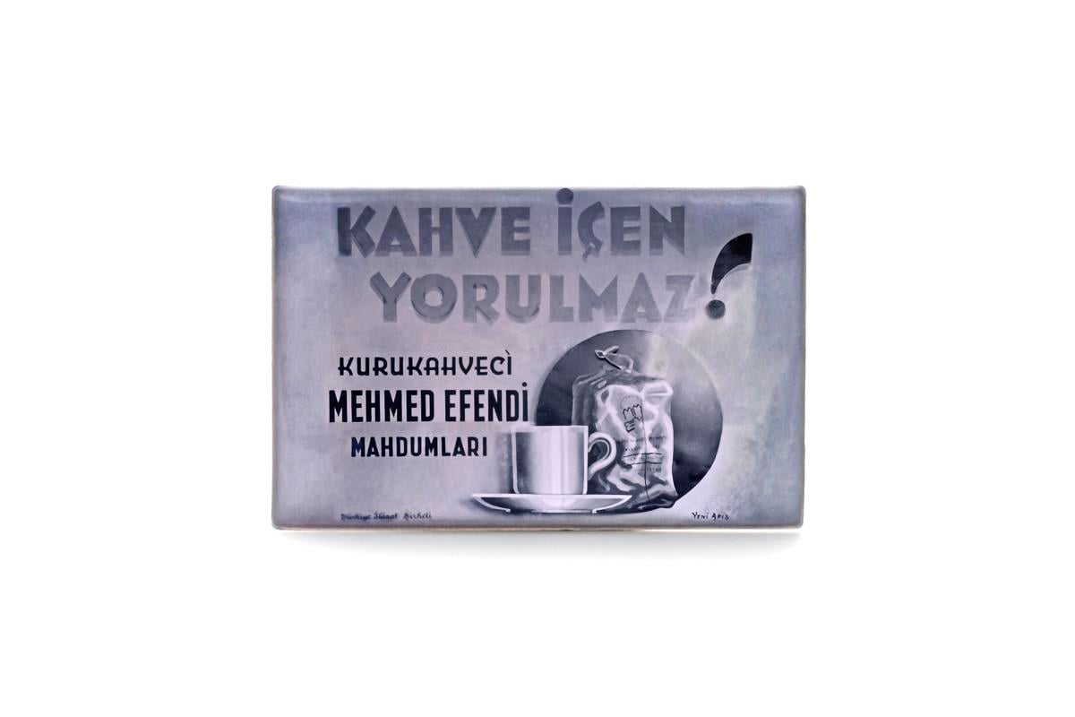Kurukahveci Mehmet Efendi'nin arşivinden: Erken Cumhuriyet Dönemi'nde yapılan ilk yerli marka pazarlama çalışmalarından biri olan eski reklam görselli magnet.
